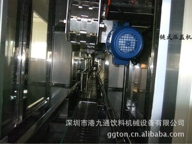 封蓋機:封蓋機采用鏈式壓蓋。連續性好,可靠性高,壓蓋密封效果好,對桶高度的容差性較小。